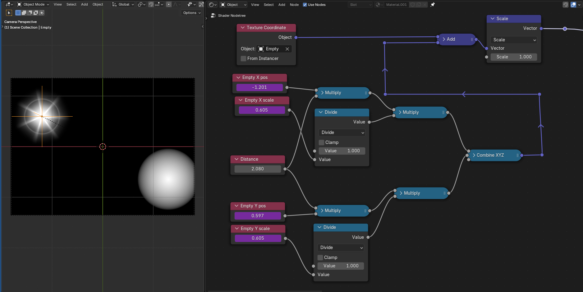 What this monstrosity does is offset the Empty's position somehow so that it becomes an "inverse" of itself relative to (0, 0). This also means that this setup ONLY works if the Empty (or the Plane) is at (0, 0) and is facing (0°, 0°).
